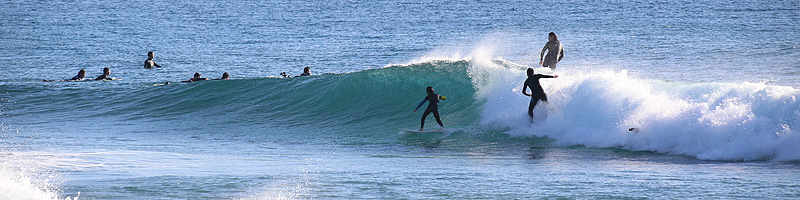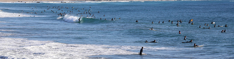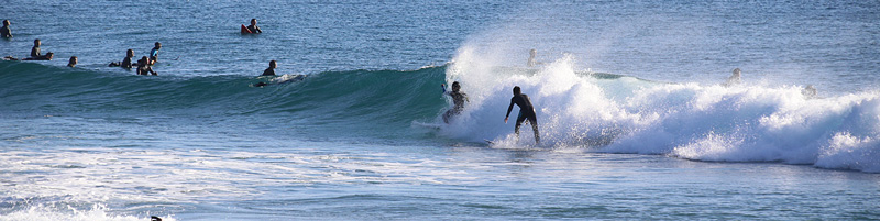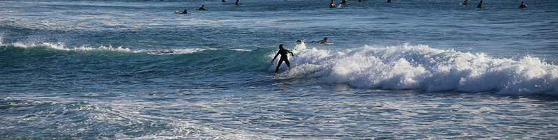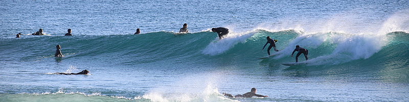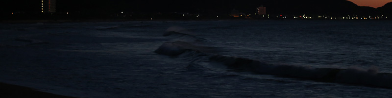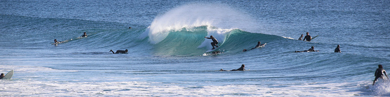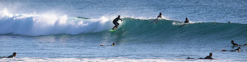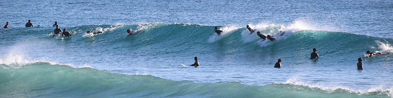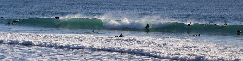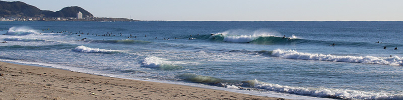 セット間隔は適度にあり、ピークがばらけてトロ厚い波。トロいうねりながらもピークから綺麗にブレイクし程良く張ったショルダーをピーク奥から走り込むか、上手く当て込みながら距離乗れる。次第に潮が引くと共にブレイクも良くなるが混雑激しくなり終了