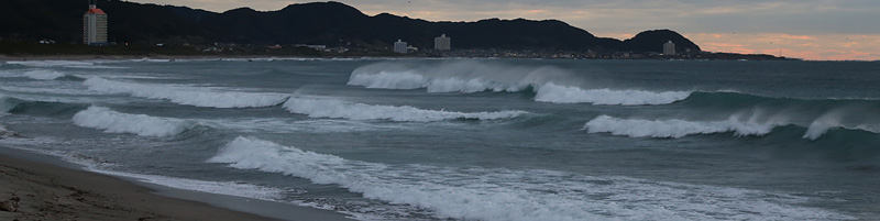 河口左側で入水。 入水時は満潮の時間帯であったがセットは繋がり気味に入るものの場所選べば形良く、インサイドまで当て込みつつ乗れる。満潮でも適度に掘れて面白いが次第に掘れ上がる抜けられない波が増えゲットも辛くなってきたので終了