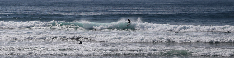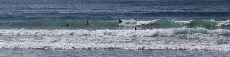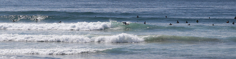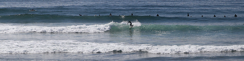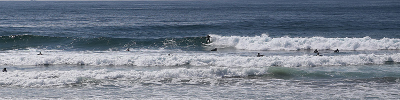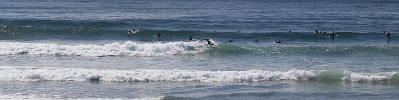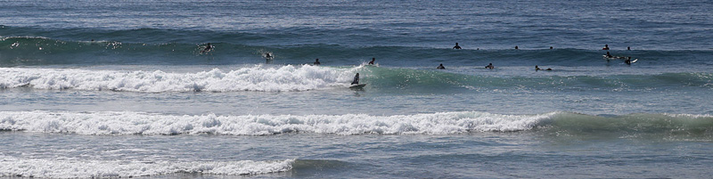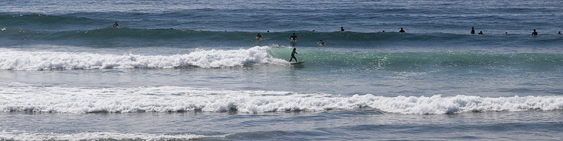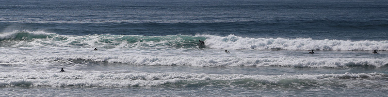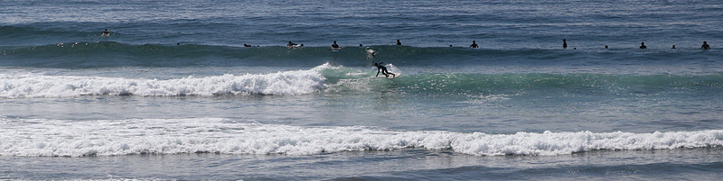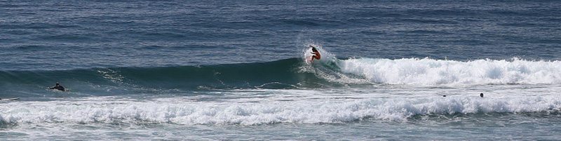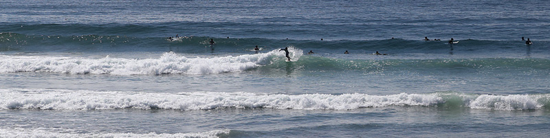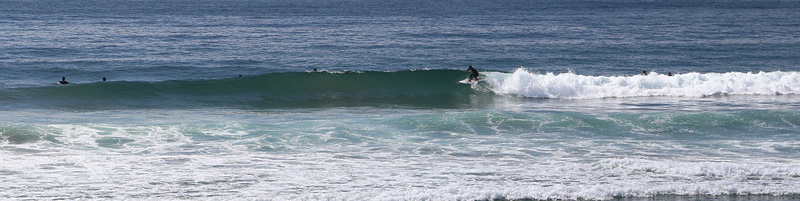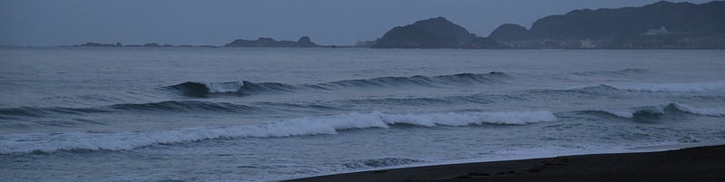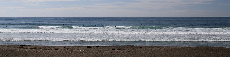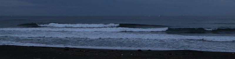 潮が多い時間帯は厚い波でピークからでないと中々乗れず、繋がり気味の波が多くショートライド中心。潮が引き始め、次第にショルダー張った走れる波が増え、3発程技入れ可能でインまで乗れる波が増えたが混雑度も増し、前乗りも多くなりコンディション悪化前に終了
