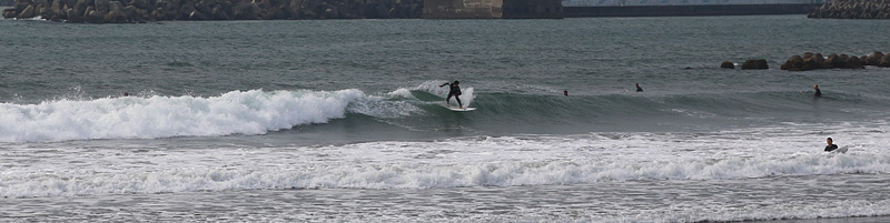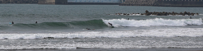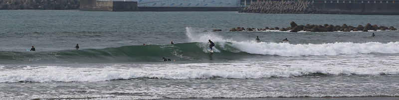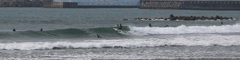 セットが入らないとフラット感たっぷりですが、セットが入ると繋がり気味なトロワイドなブレイク。上手くピークから乗ればインまで走れる。セット合間の小さめな形良い波も以外に乗れて走ってフィニッシュ可能