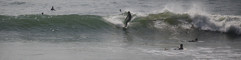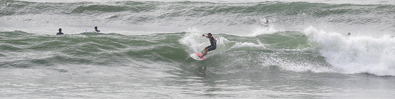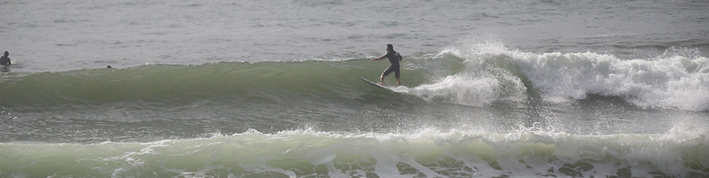2番目に入水。その時は腹胸程度だった波が入水した途端に肩頭のセットが入りだし、ミドルタイドだったので程よく掘れて張った波がインサイドまで続き超ロングライド出来る状況。その後更にバンバンセットが入りピークを避けつつ大きめな波を適度に頂き、久しぶりにボトムが暑いながらも綺麗にブレイクする波を堪能出来ました。