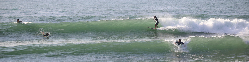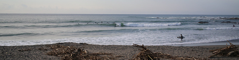 潮の引き具合がよく、セットはアウトから綺麗に崩れ、ショルダー張ってインまで3〜4回技入れつつ超ロングライド可能。徐々に人増えてきましたが、うまく波を選んで堪能