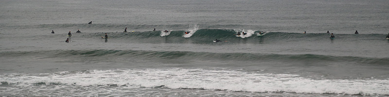 適度なセット間隔で繋がり気味のやや速いブレイクでショートライド中心。時々切れた波が入り走り込んで一発か、2発ほど技入れつつインよりまで走れる波がくる。