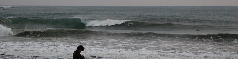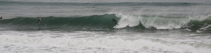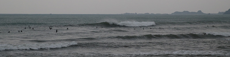 セット間隔はやや短くカレントを利用しないとゲットハマり気味、波は形良くピークから掘れて張った波。乗ればインサイドまで当て込みながら十分ライド可能だが、混雑激しく前乗りも多く何度叫んだことか…