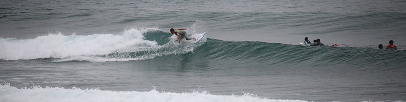 入水時はまだ潮が多いものの引きに動き出し、セット中心にピークからインまで乗れる波が多く、混雑するも広範囲にバラけていたので混雑感サフィン出来ました。大潮で引きが大きく短時間でワイド気味な波となりピークからでは抜けられない波が増えてきましたが、切れ目から上手く乗れば距離乗れますが波は力なく厚い波で乗りにくくなり終了