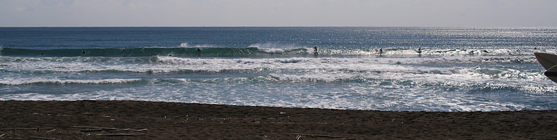 入水寺は潮が多く波は厚くピークから上手くつないでインよりまで乗れる感じでしたが、潮の引き加減が大きく、みるみるワイドな波となり、途中板を取り替え惚れる波対応の板なら走って抜けられましたが、引きいっぱいの頃には掘れ掘れとなり終了。正面付近もワイドで抜けられない波が殆どとなる