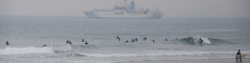 面良くミドル付近からやや速めのブレイクが中心。時々形良く張った波も来て、乗れば技入れながらインまで走れてフィニッシュ可能