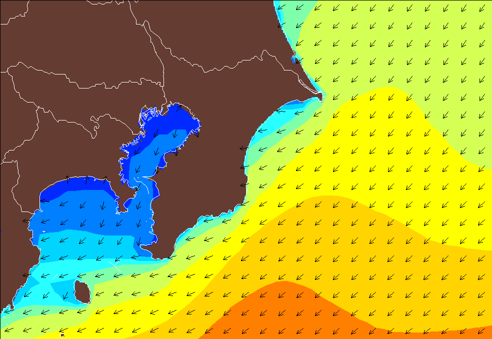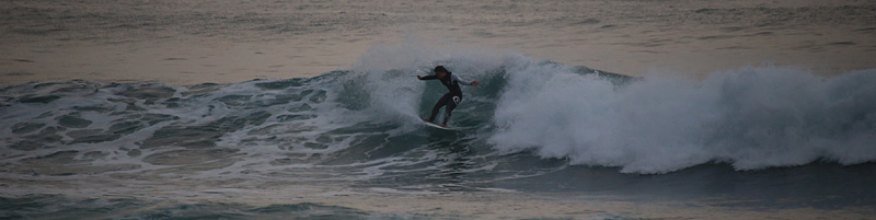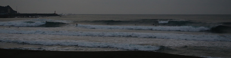 オフショアに煽られたブレイク。ピークは掘れるが斜面は緩やかで多少張りつつ走っていけるが、途中厚くなる。