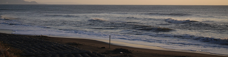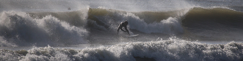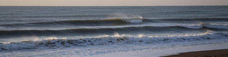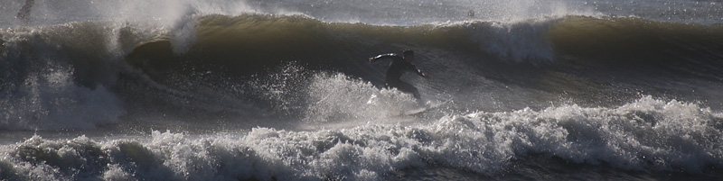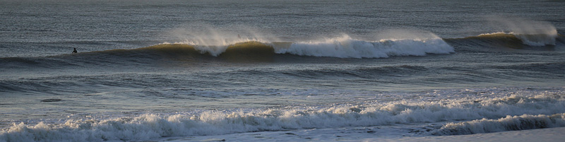 オフショアの風がやや強く、波は満潮でもサイズあるのにアウトからトロ厚いややワイド気味のブレイク。厚めなので乗りやすく早めのテイクオフでファーストブレイクのセクションを走って抜けられるがその後のショルダーの張りが弱く上手くつないでインまで行ける、