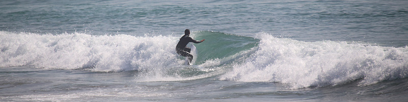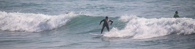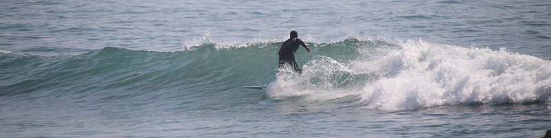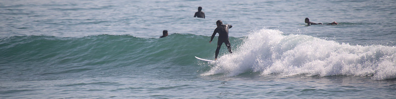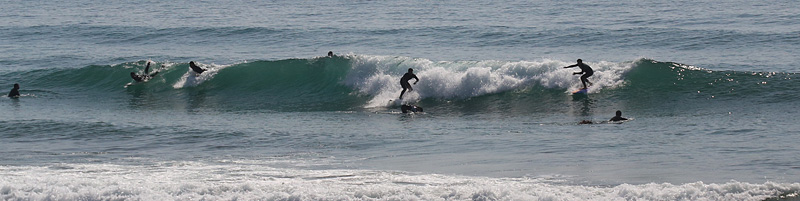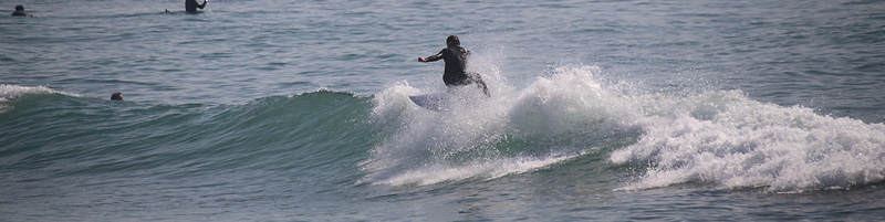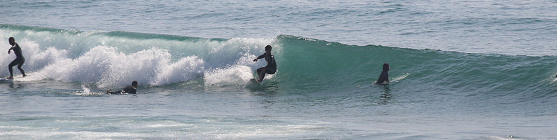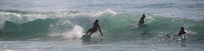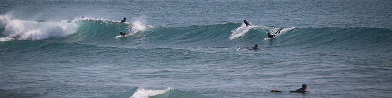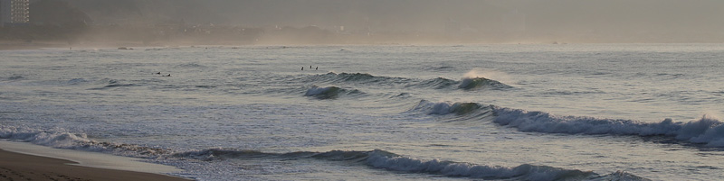 セット間隔は適度にあり、アウトから形良く前日よりも乗りやすい波、しかし、満潮の時間帯でもブレイクが速く、ピークからだと退けられない波が多い。人も増えて混雑しほどほどで終了 |