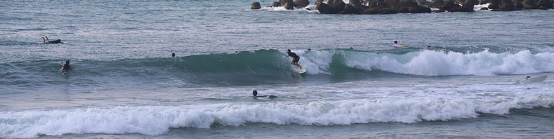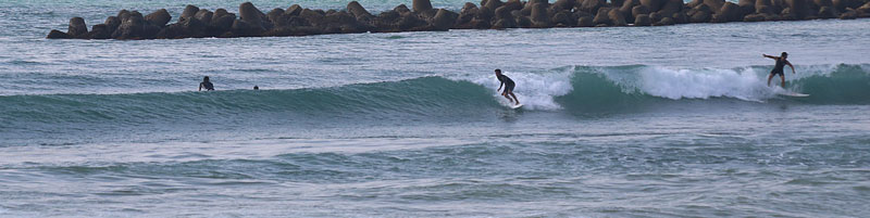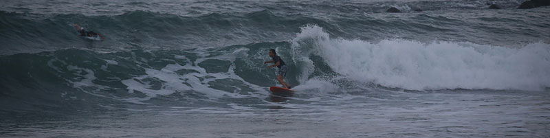 繋がり気味ながらもピークからやや速いブレイク、掘れるピーク切れ目から走って行けるが、次第に潮が引いて更にブレイクが速くなり、抜けられない波が増え、人も多くなり終了 |