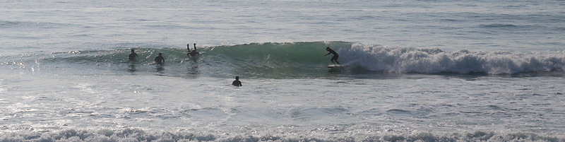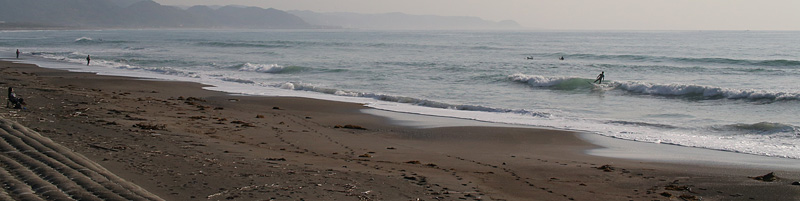 無風で面はややボヨボヨしつつ、大潮満潮の為、セットで入る波はトロトロのブレイク、大きめの波はピーク奥からセクション走ったのちショルダー続かないので上手く繋いでインまで乗れる。メインはすでに人が多かったので左側でマッタリサーフ