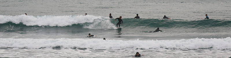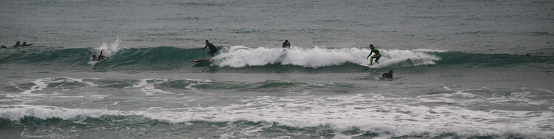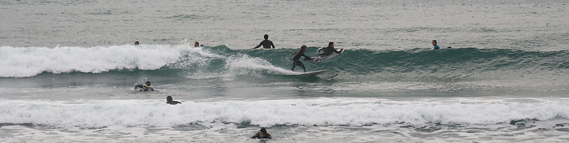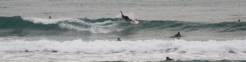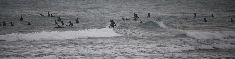 入水時はサイド気味の風が強く、波は潮が引いておりワイド気味なh後れる波、上手く切れ目狙いで走っていける。次第に風が治り麺も良くなり乗りやすくなってきたが混雑
