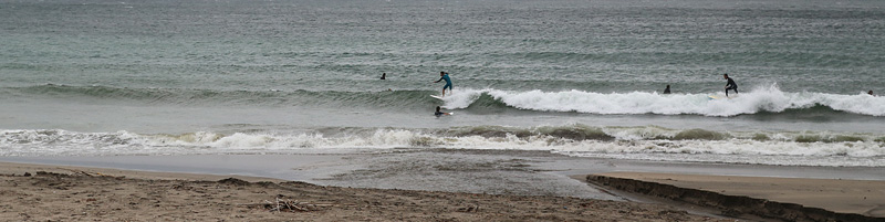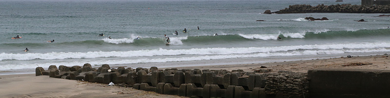 強風で煽られ流れがあり、セットはトロ厚く乗りにくい波。乗れても多少走れる程度で終了