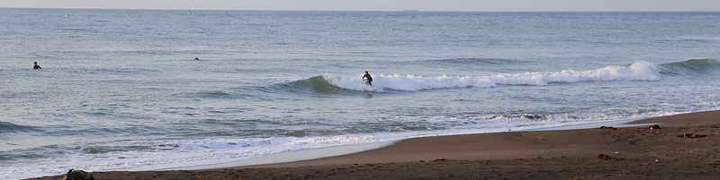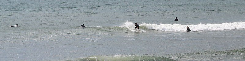 波は厚い波でしたが、押してくれるので見た目よりも良く乗れて岸まで行けます